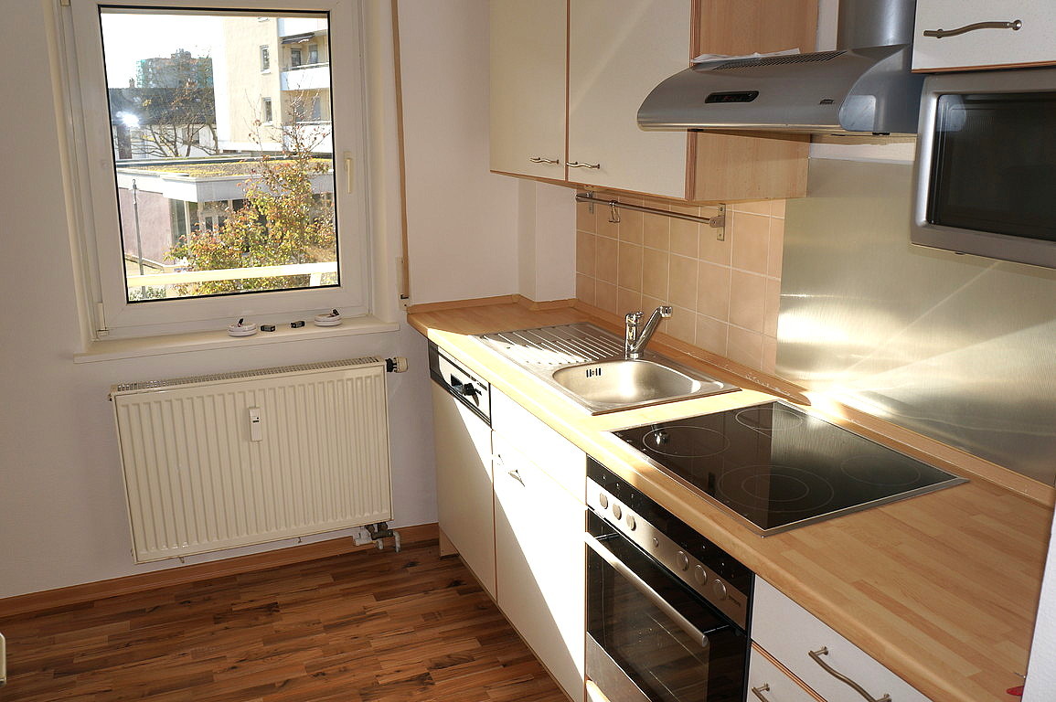 Eine vollfunktionstüchtige, neuwertige Einbauküche ist im Preis inbegriffen. Der Boden ist mit schönem dunklen Laminat belegt. Das Bad ist weiss gefliesst und befindet sich, wie der Rest der Wohnung, in einem sehr sauberen und ordentlichen Zustand.